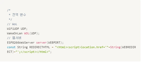 전역 변수는 별 것 없습니다. 웹서버, UDP, WOL을 제외하면 리다이렉트 주소만 있습니다.