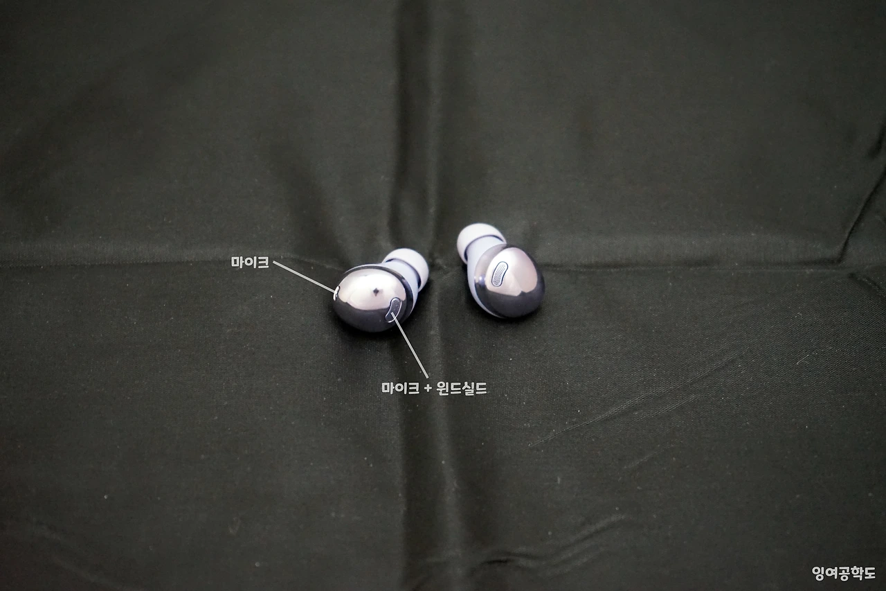 소리는 두말 할 것 없이 합격점이니, 소음 제어를 통한 주변 소리 듣기와 액티브 노이즈 캔슬링에 대해서 살펴봐야되겠지요? 갤럭시 버즈 프로는 한 이어버드 당 외부 두 개, 내부 한 개로 구성되어있는 마이크를 통해서 소리를 수음하고 제어하고 있습니다.