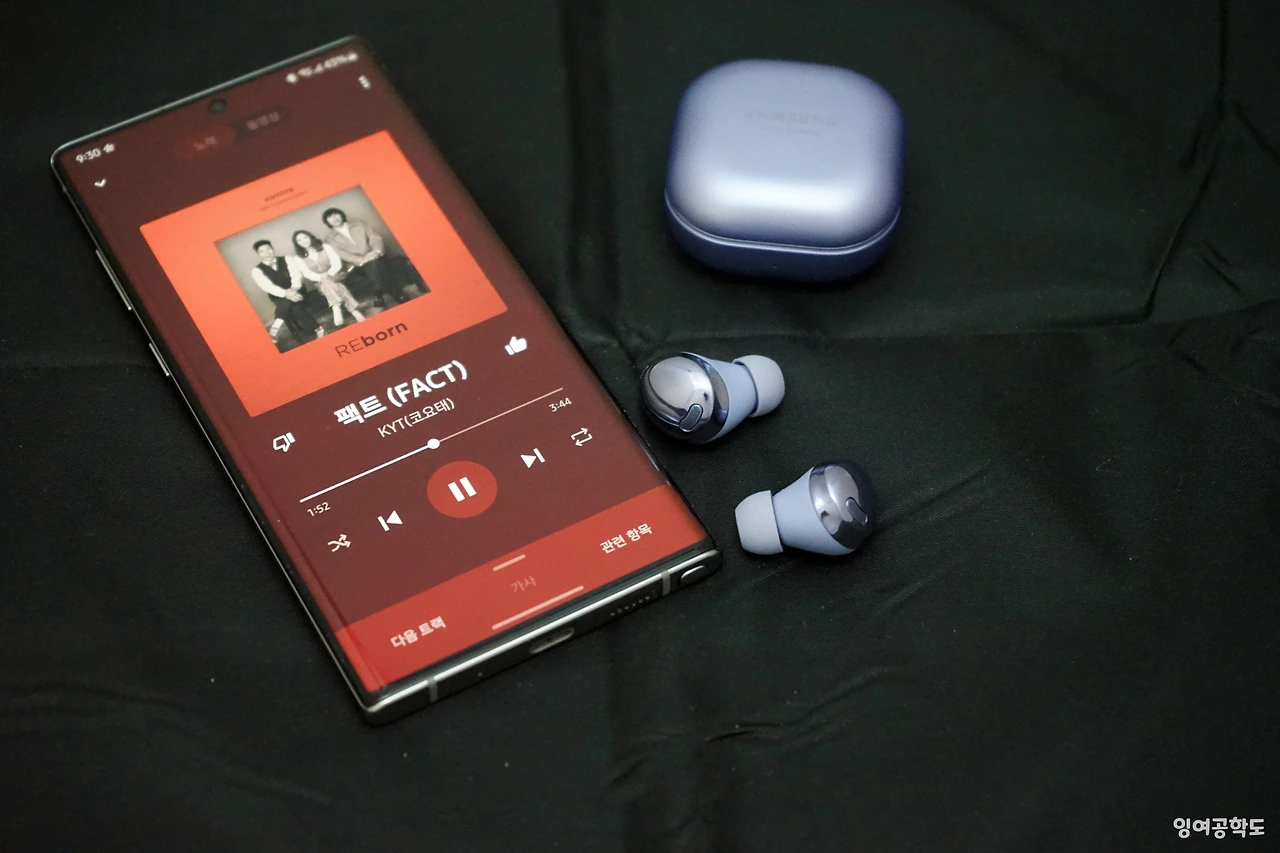 더군다나 소음 차단을 정말 제대로 해주고 있는 노이즈 캔슬링 하드웨어 같은 경우 귀가 먹먹해지는 느낌을 받을 수밖에 없는데.. 갤럭시 버즈 프로는 소음 차단을 제대로 해주고 있음에도 불구하고 귀가 먹먹해지는 느낌이 전혀 들지 않습니다.