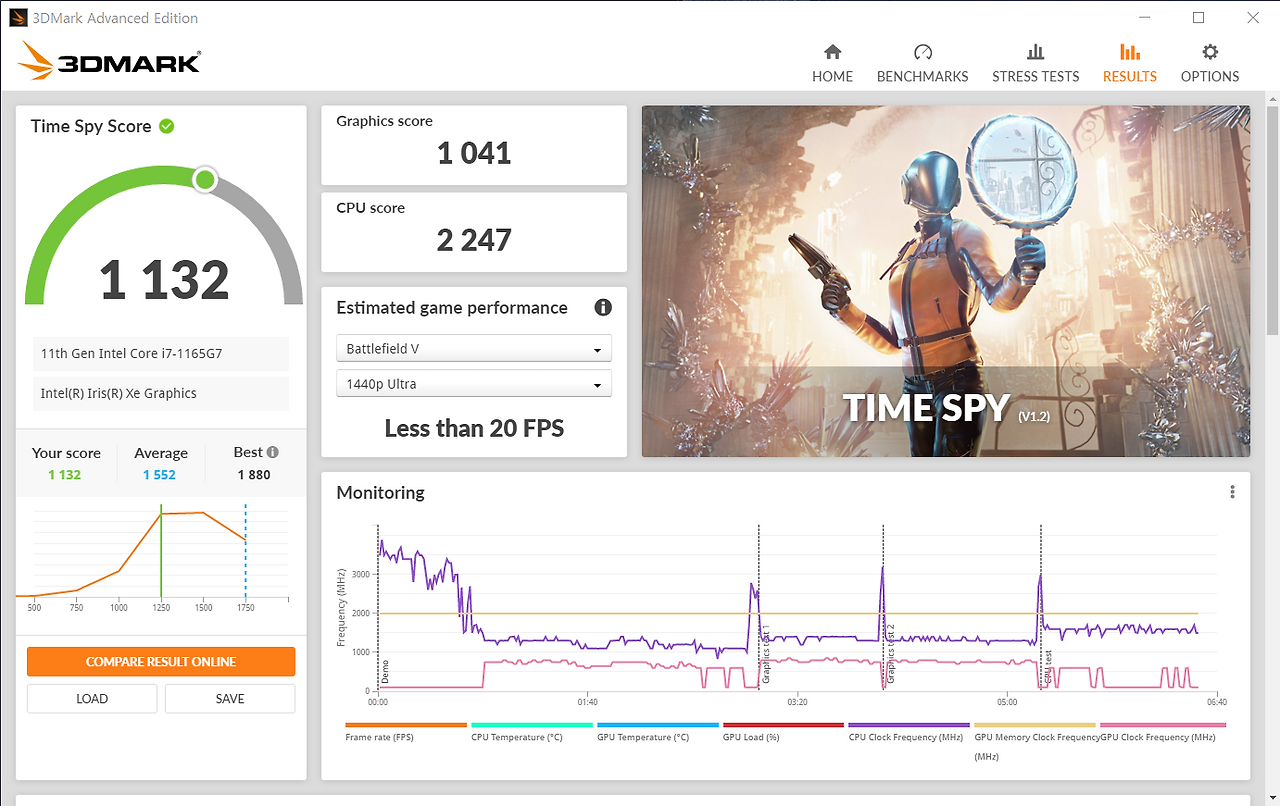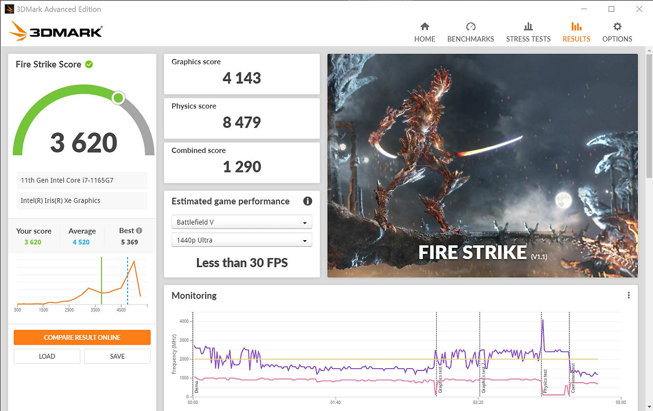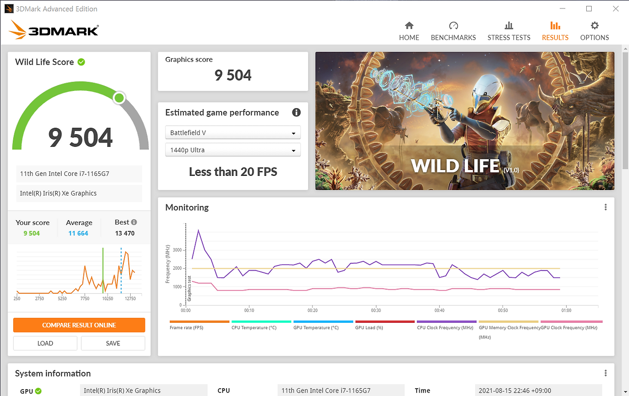 이를 충분히 해소하기 위해서 출시 당시에 거의 없었던 13.3 인치 Intel i7-1165G7 / 16GB LPDDR4X 모델을 찾아서, 찾는데 고생했었던 만큼 성능 하나는 정말 괜찮았습니다.