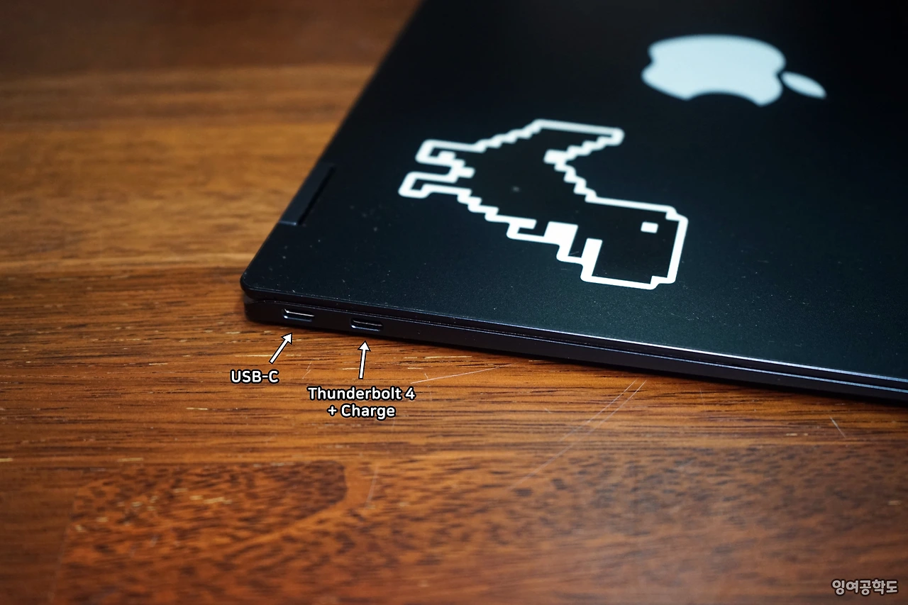 인터페이스로는 왼쪽에 USB-C와 충전을 겸용하고 있는 썬더볼트 4, 오른쪽에 3.5 파이 헤드폰 잭, USB-C, Micro SD를 제공해주고 있는데요, 미래를 생각해보면 정말 무난하고 괜찮은 구성을 가지고 있지만, 아직 USB-A를 사용하는 경우가 더 많이 있어 별도의 어댑터를 계속 휴대해야 한다는 귀찮은 요소를 가지고 있습니다.