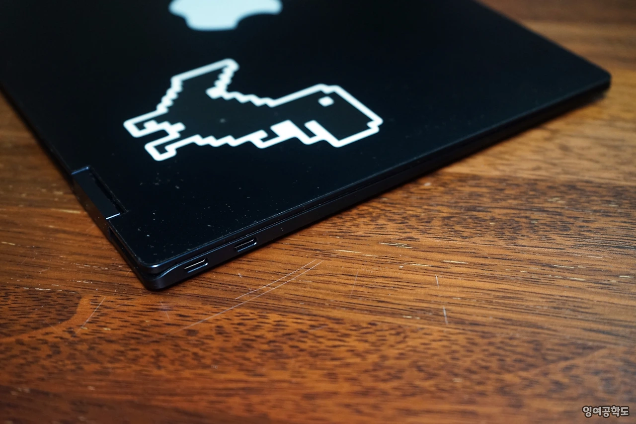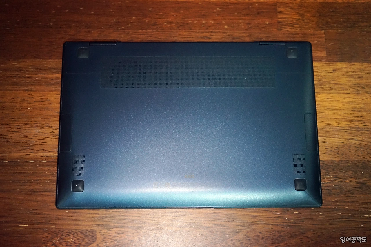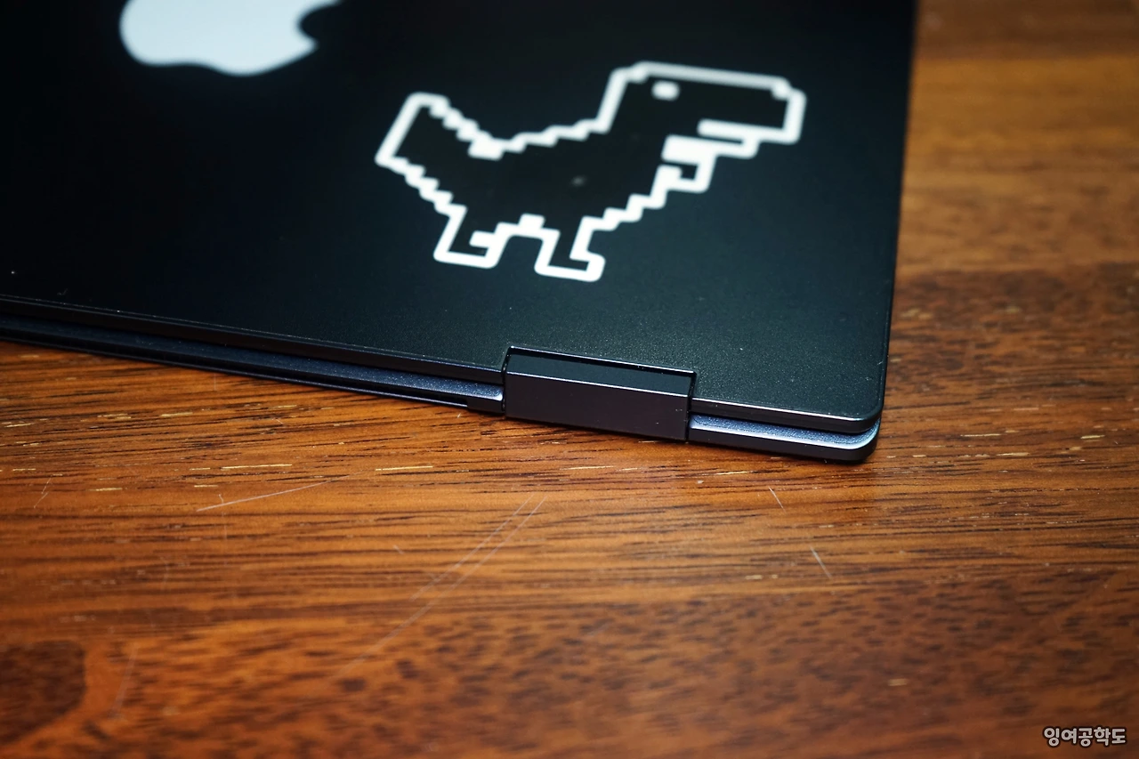 클램쉘 디자인이 여러모로 노트북 디자인 중에서는 깔끔하고 이쁜 디자인인데 컨버터블 환경에서는 조금 아쉬울지도 모르겠습니다.