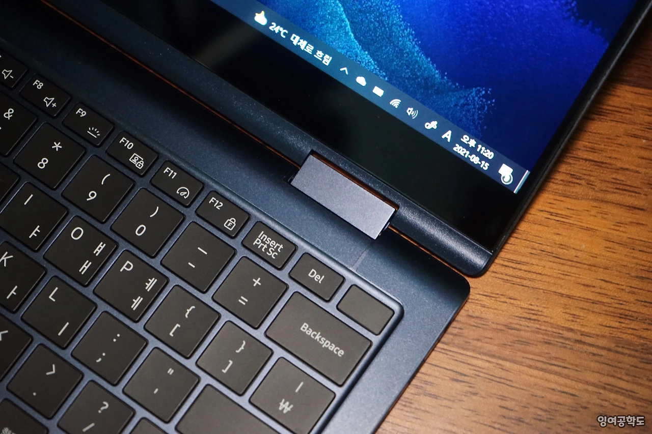 하지만, 갤럭시 북 프로 360은 지문 인식 겸 전원 버튼이 Del 버튼 바로 옆인 과제 암살자 위치에 놓임으로써 우측 Shift 키가 정상적인 크기로 돌아왔습니다. 지문 인식 센서가 들어간 이후로 얼마 만에 배치가 정상 수준으로 무난하게 돌아온 것인지 모르겠습니다. 이제 아쉬운 것이 지문 인식 겸 전원 버튼이 측면이 아니라 과제 암살자 위치에 있는 것 밖에 없습니다.
