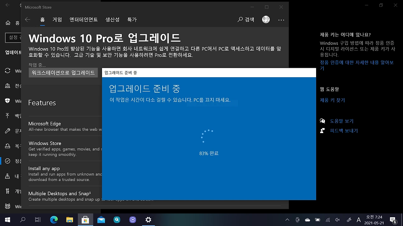 Windows 10 Home → Windows 10 Pro 라이선스로 업그레이드해서 사용 중..