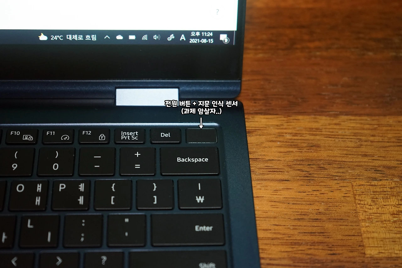 최근 몇 년 간 출시된 삼성 노트북을 살펴보면 일단 지문 인식 센서가 우측 Shift 키를 잡아먹고 있어서 배치가 썩 좋지 못했습니다. 뭐 우측 Shift 키를 잘 사용하지 않는다면 크게 문제 되지 않겠지만, 복합적으로 키를 잘 사용한다면 지문 인식을 도려내고 싶을 정도로 잘 못 누르는 경우가 많습니다.
