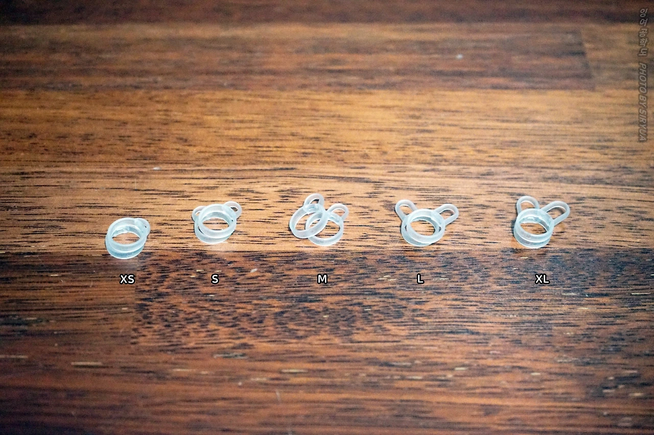 다만, 피팅 서포터는 다섯 가지(XS, S, M, L, XL) 사이즈 중에서 맞는 사이즈를 찾는 것이 중요했습니다. 조금 작은 사이즈를 사용하면 쉽게 이어폰이 귀에서 빠져나왔고, 약간 큰 사이즈를 사용하면 오래 사용했을 때 귓바퀴가 약간 부담되는 느낌이 없지 않아 있었습니다.