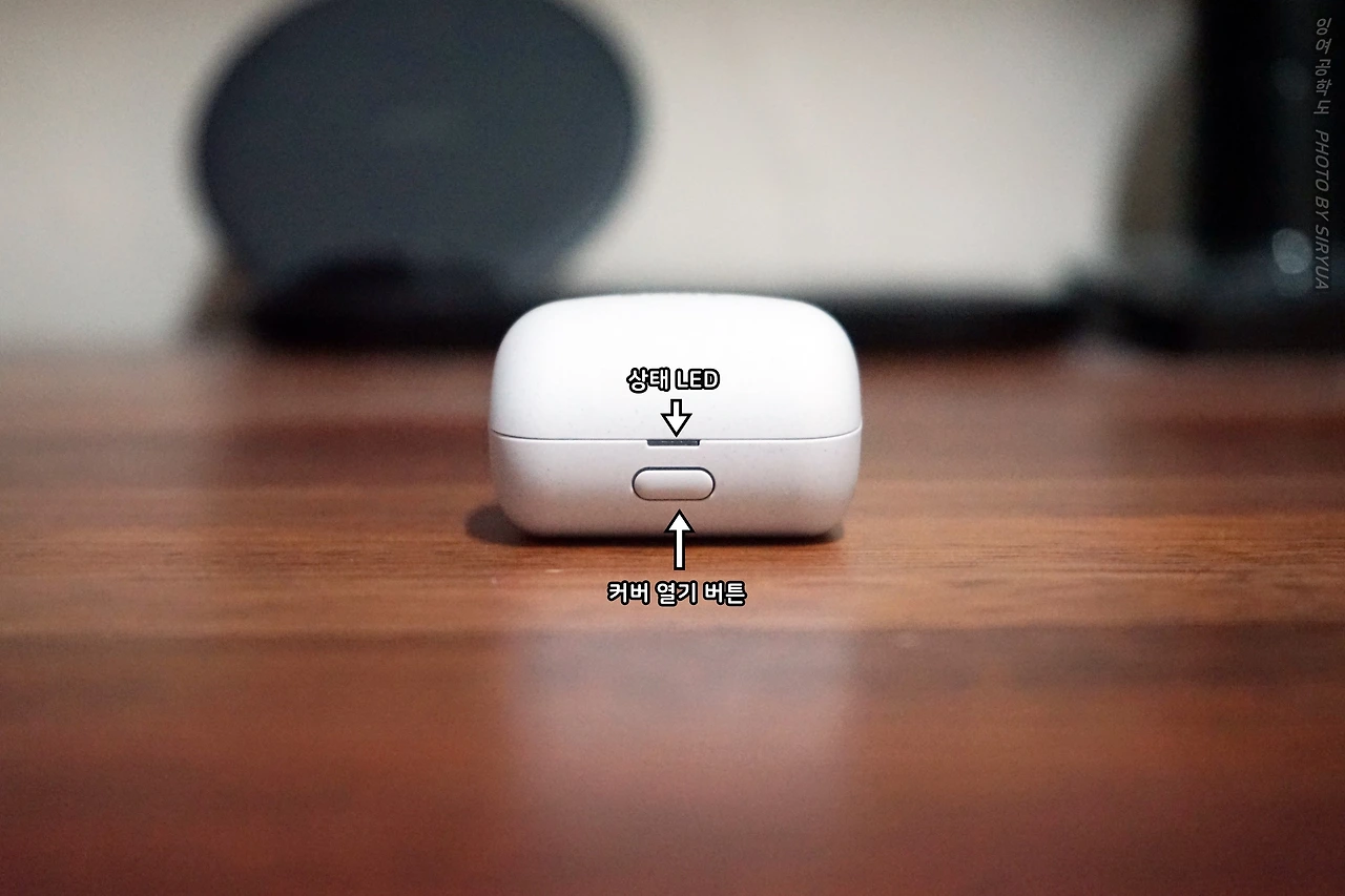인터페이스는 전면에 상태 LED와 커버 열기 버튼, 뒤쪽에 페어링 버튼과 충전 포트가 위치하고 있습니다. 그동안 사용해본 소니 무선 이어폰이 몇 개 되지는 않지만.. 소니 이어폰이 처음 연결 이후 새로운 하드웨어와 페어링 하기 위해서는 NFC를 사용하거나 이어 버드의 인터페이스를 길게 누르는 것으로 가능했는데.. 페어링 버튼이 따로 있는 경우는 처음인 것 같습니다.