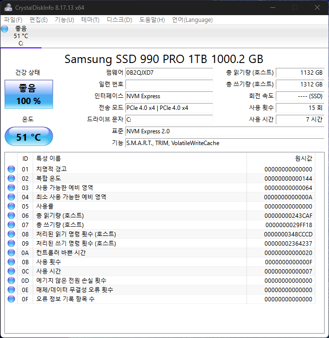 지금까지 갤럭시 북 프로 360 13인치 1세대의 SSD를 990 PRO 교체하고 벤치마크를 돌려본 후기였습니다. 일단, 저는 다른 것보다 안 그래도 부족했던 용량이 1 TB로 향상되었다는 것만으로도 충분히 만족을 하고 있습니다. 당분간은 사용하는 모든 프로그램을 다 설치하고도 어느 정도는 용량이 남아돌거든요. 덕분에 스트레스 하나 줄었습니다.
