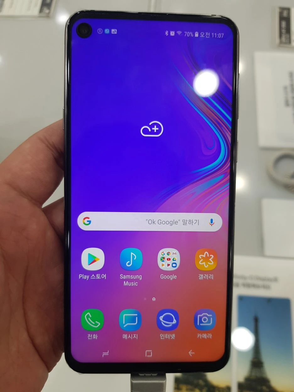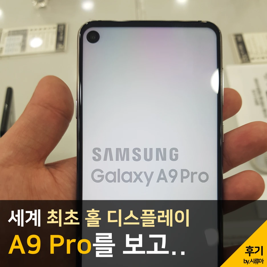 근래 몇 가지 일로 정신없이 움직이고 있다 보니, 세계 최초로 홀 디스플레이가 적용된 갤럭시 A9 Pro(해외 명 갤럭시 A8s)가 국내 출시된다는 이야기는 들었지만 출시되었는지에 대한 여부는 제대로 모르고 있었습니다. 이렇게 지나쳐갈 뻔했으나.. 아버지께서 사용하고 계시던 갤럭시 노트 9의 번인 증상이 매우 심해서 삼성전자 서비스 센터에서 액정 교체 서비스를 받으며 기다리다 보니, 전시 부스에 다양한 기기들과 함께 전시되어있는 것을 보았습니다.