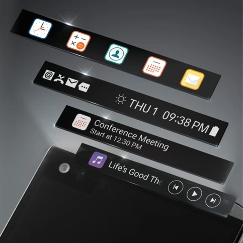 간단하게 상태 바를 기존에 카메라 옆으로 여백을 가지고 배치해두고, 검은색으로 칠해두는 것도 활용할 수 있는 방법 중 하나입니다. 하지만 조금 더 효율성 높고 알차게 쓸 방법이 없을까요? 한참을 생각해보다 보니 이전에 LG전자 V 시리즈의 아이덴티티였던 디스플레이가 바로 떠올랐습니다.