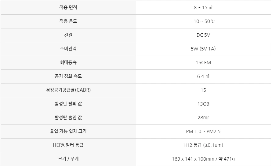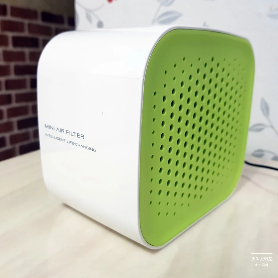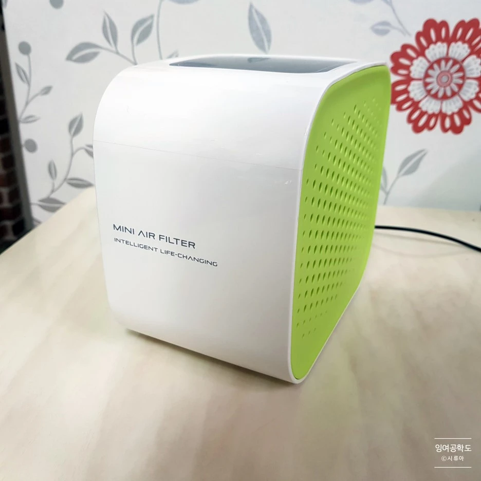 작은 크기와 5V 전원으로 휴대하기 딱 좋은 공기청정기입니다.