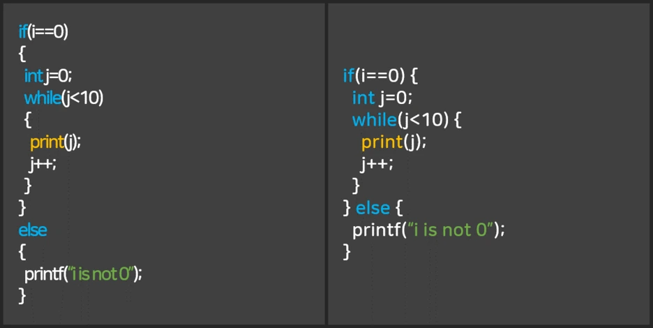 그럼, 혼자서 공부할 때 또는 개인 프로젝트를 할 때는 어떤 문법을 맞추어야 되느냐? 그냥 본인이 편한 대로 하시면 됩니다. 어차피 공부할 때도 그렇고 개인 프로젝트도 그렇고 주는 본인이지 타인이 아닙니다. 그러니 본인 편한 대로 하시면 됩니다. 위에서 말씀드린 것처럼 다수의 인원이랑 협업할 때 다 같이 맞추기로 한 문법 꼭 지켜주시면 됩니다.