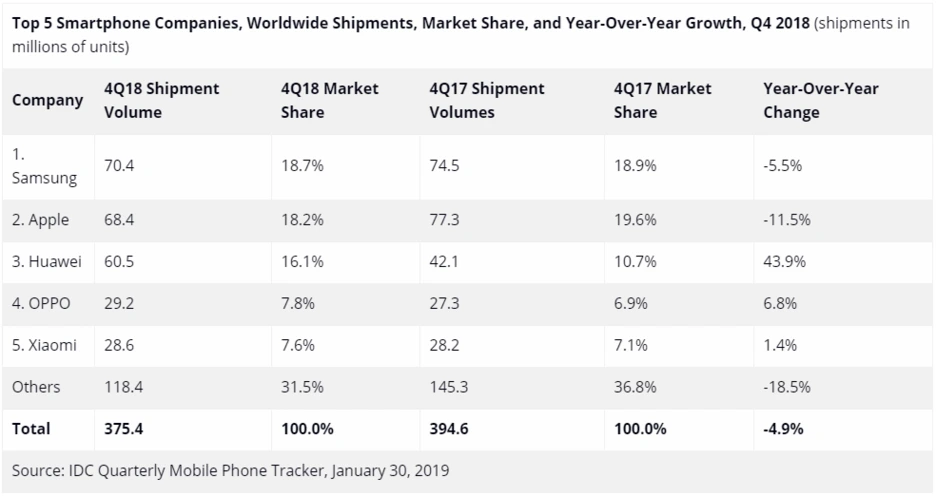 Smartphone Woes Continue with Worldwide Shipments Down 4.9% in the Holiday Quarter Capping off the Worst Year Ever, According to IDC examines consumer markets by devices, applications, networks, and services to provide complete solutions for succeeding in these expanding markets.