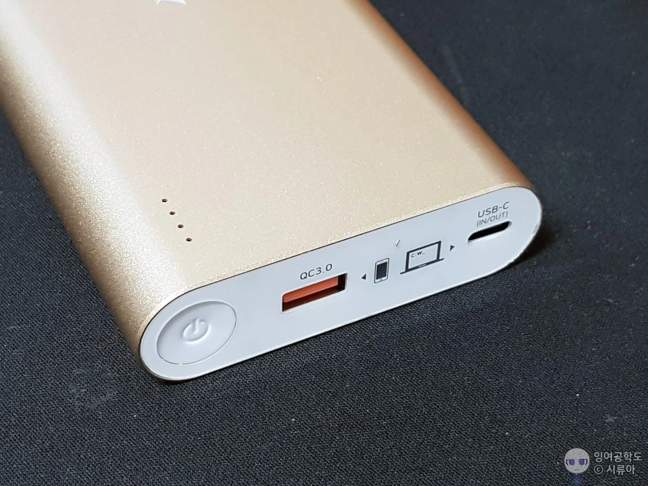 상단에는 전원 버튼과 함께 QC3.0과 USB-PD 포트가 각각 하나씩 있습니다.