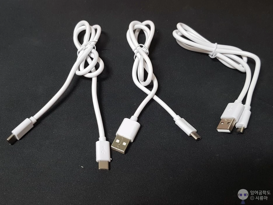 케이블 3종은 요즘 번들로 제공되는 케이블보다는 두껍습니다.