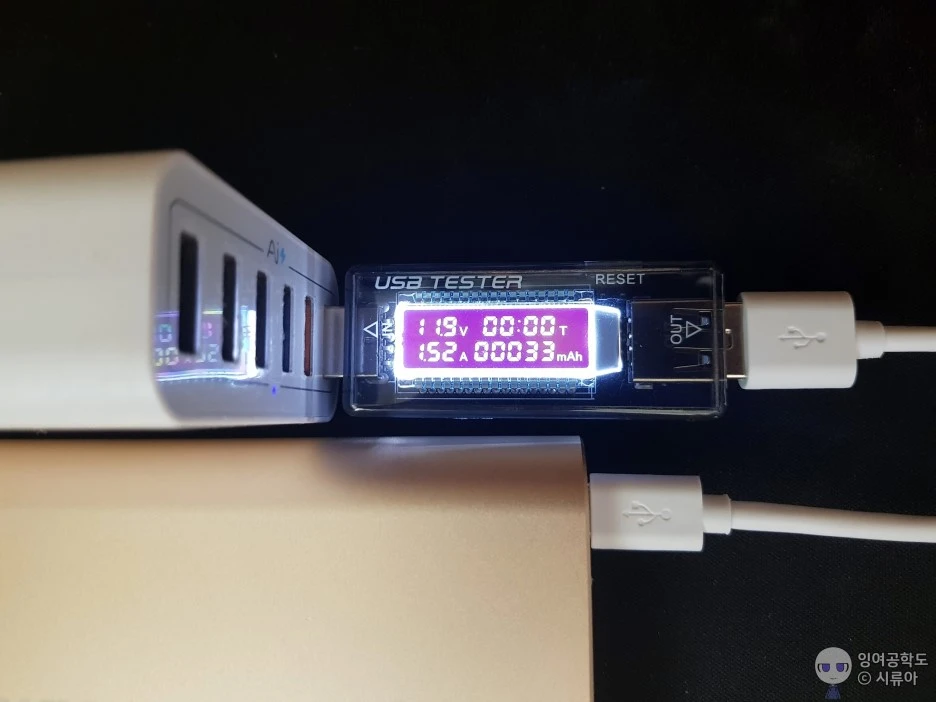 일반 5V 충전기에서는 4.97V 2.46A로 진행되며, QC3.0에서는 11.9V 1.52A로 진행됩니다.