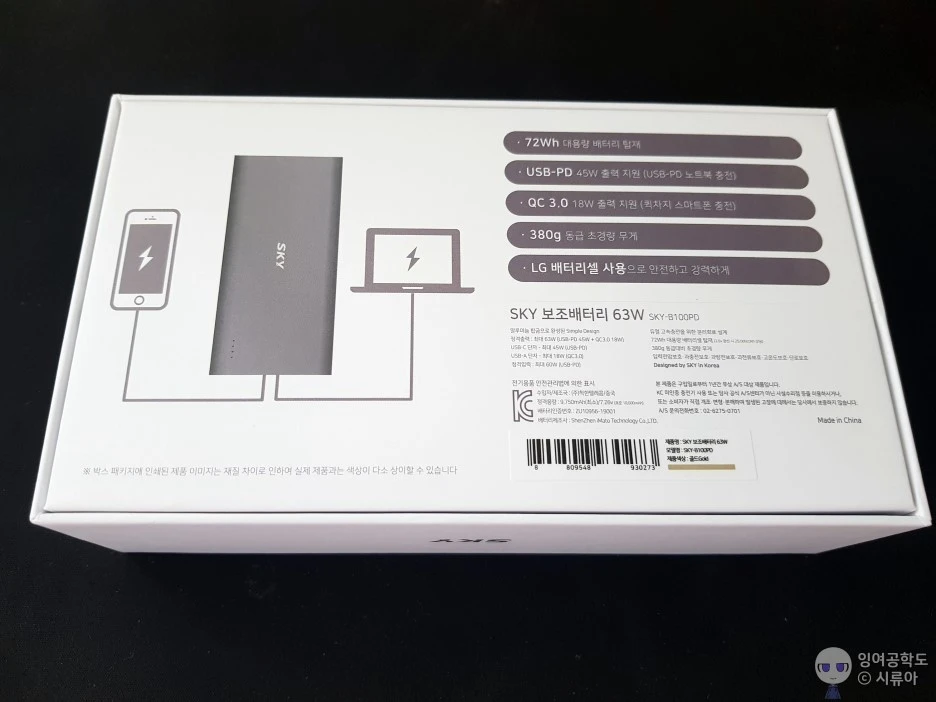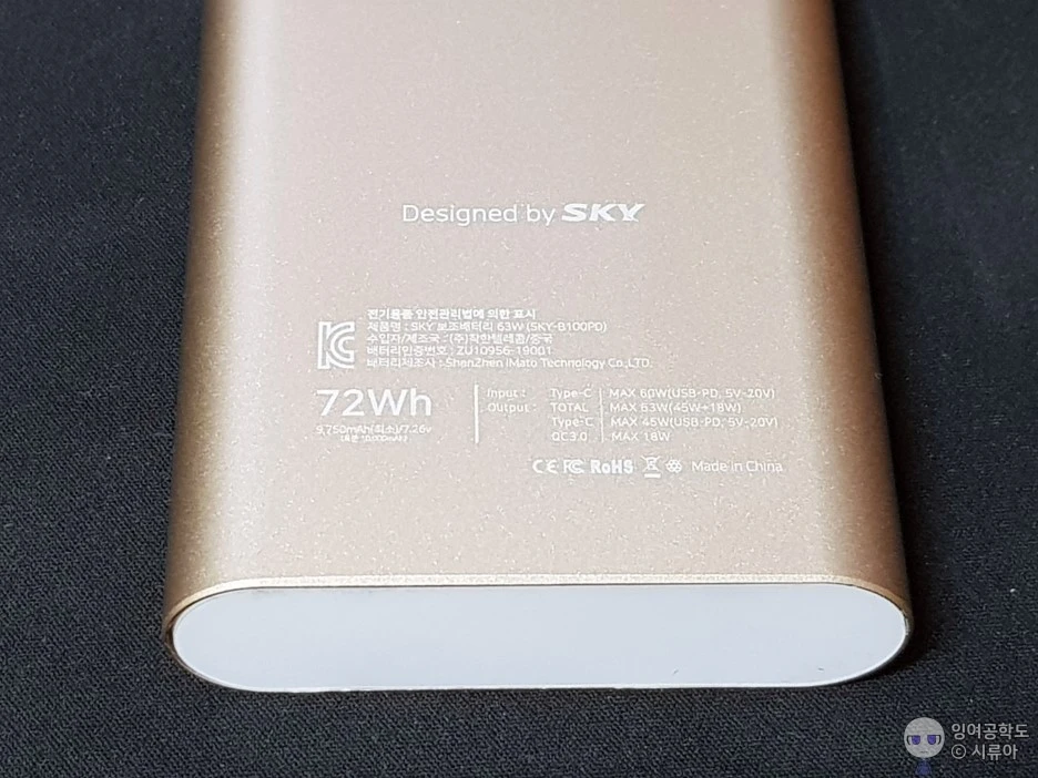 샤오미 같은 경우 최대 45W인 반면, SKY는 63W으로 더 높습니다.