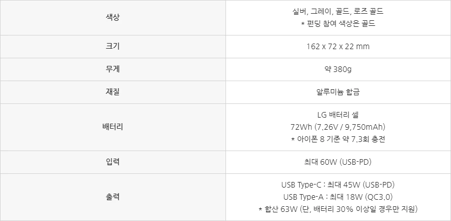 USB-PD, QC3.0을 지원한다는 점을 강조하고 있습니다.