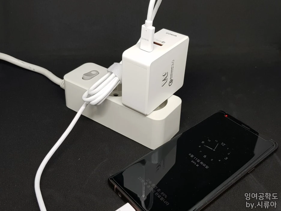 USB-PD와 QC3.0 충전 테스트는 테스트기와 함께 갤럭시 노트 9, SKY 보조배터리 63W로 진행했습니다.