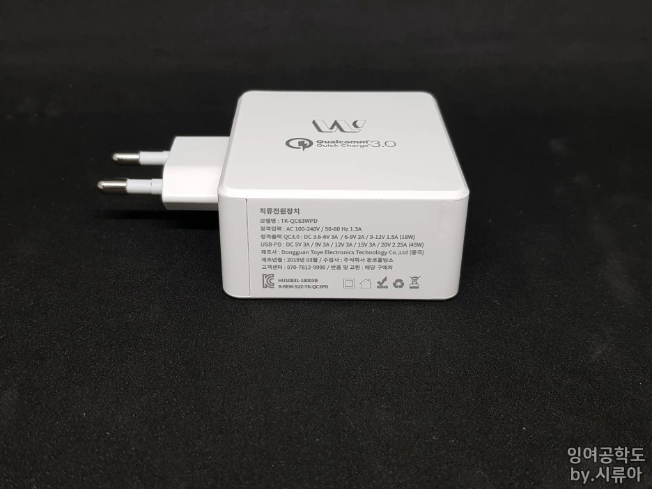 위쪽으로는 전체 출력과 QC3.0, USB-PD 충전이 된다고 적혀있으며
