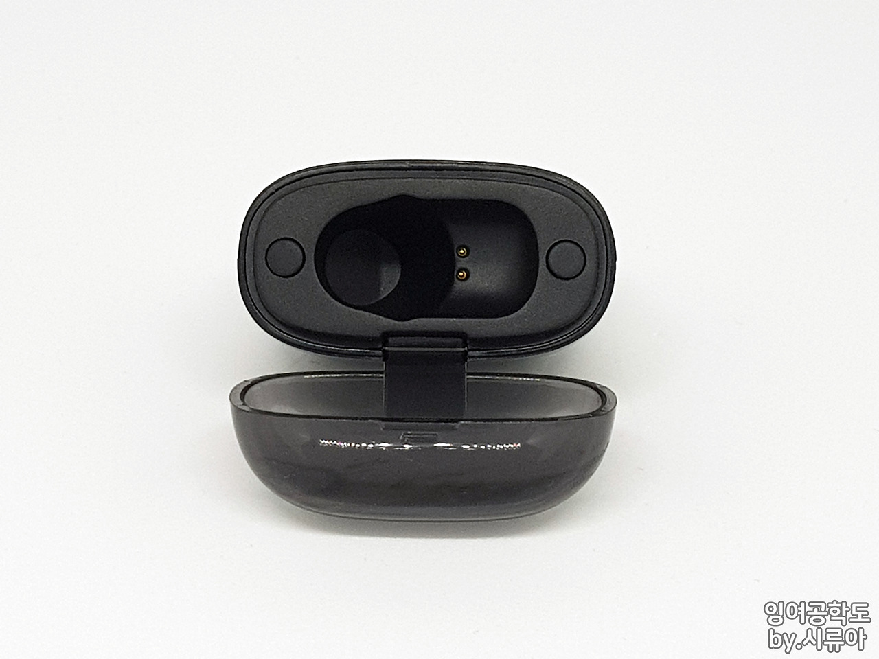 반투명 커버는 이어버드가 충전 중 일 때 상태 LED를 그대로 투과해주어서 충전이 진행 중인지 확인할 수 있게 해줍니다.