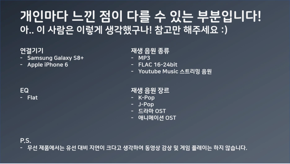확실히 중저음이 많은 노래를 들을 때는 상당히 울림이 괜찮게 들려옵니다.