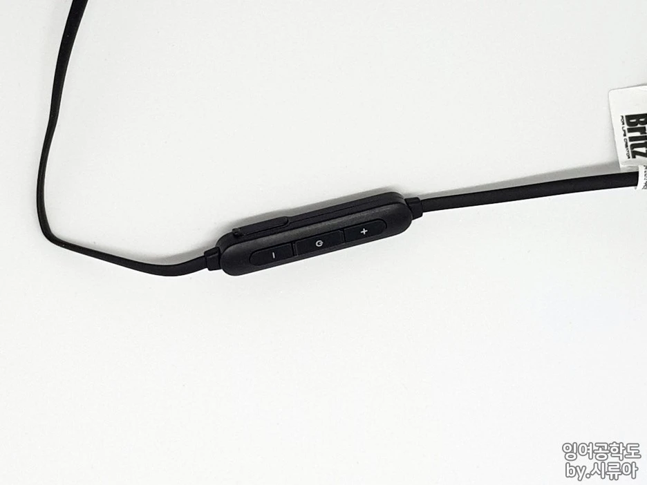 볼륨 업. 전원, 볼륨 다운 순으로 배치되어있으며,전원 버튼을 꾹 누르면 전원이 켜지고, 한 번 누르면 재생/일시정지, 길게 누르면 음성 인식을 호출합니다.