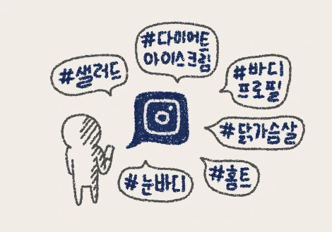 내가 접했던 그 커뮤니티 사람들은, 대부분 공통적으로 몇몇 유명한 다이어트 인플루언서들과 다이어트 업체들의 마케팅 채널을 팔로우한다. 식품 관련 업체로 말하자면 유명한 샐러드 가게, 저칼로리 아이스크림과 디저트, 각종 닭가슴살과 다이어트 도시락 업체 등이 있을 것이고, 그 외에는 바디프로필 스튜디오, 요가복 브랜드, 홈트 유튜버 계정 등이 있을 것이다. 남들이 팔로우하는 것들을 하나둘씩 팔로우하다 보면 비슷한 계정들을 추천받아 더 많은 팔로우를 하게 되고, 결국 어느 커뮤니티가 그러하듯, 다이어터들의 필수 소식을 접하면서 그들과 생각이 동기화된다.
