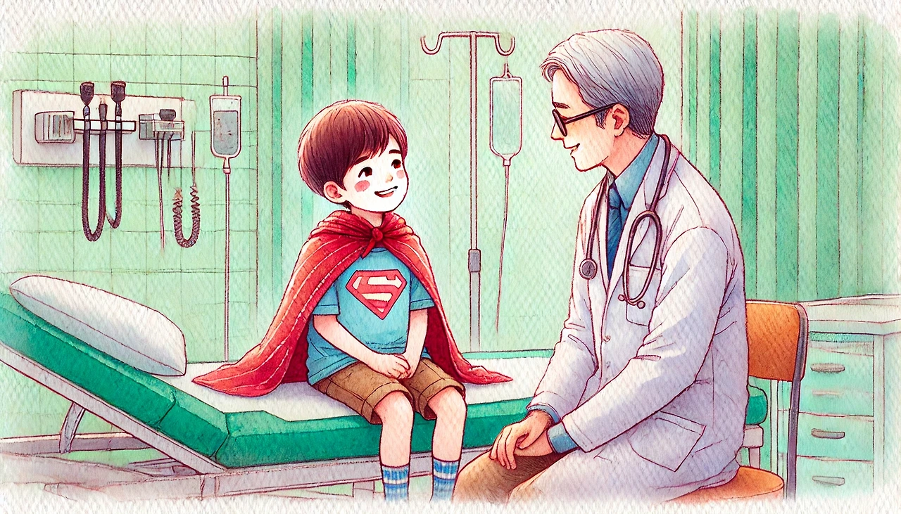 “허허 우리 꼬마 슈퍼맨이 응급실에 오다니! 앞으로는 안전수칙을 잘 지켜서 다치지 않고 이 세상을 지키는 슈퍼맨이 되어요. “