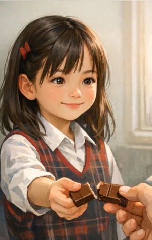 어느새 자신의 가장 소중한 초콜릿의 절반을 뚝 잘라 나에게 건네주는 츤데레가 되었다.