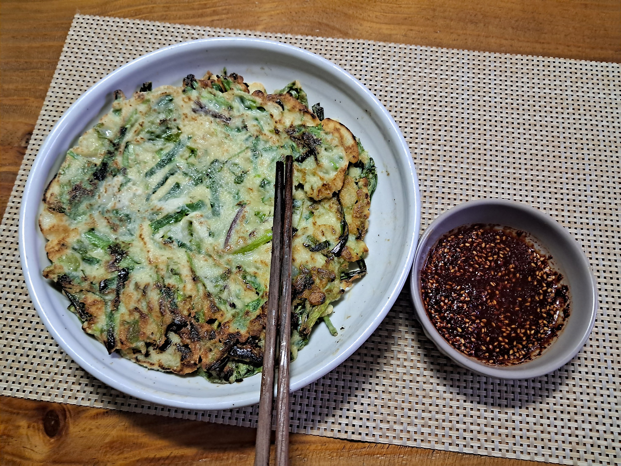 오늘 첫 수확한 부추는 사위도 안 준다는데 전 부쳐서 한쪽 갖다 드려?
