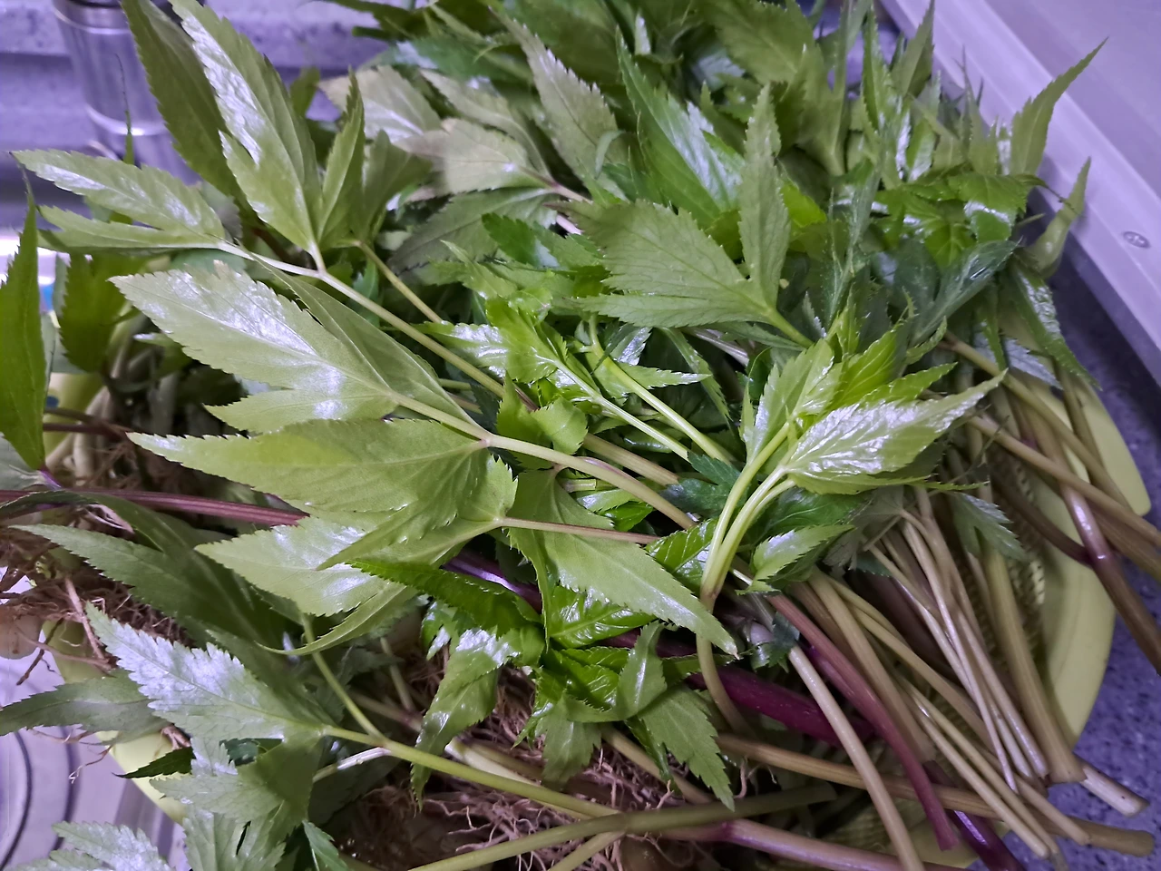 아침마다 남편은 두릅을 따서 탁자에 올려둡니다.