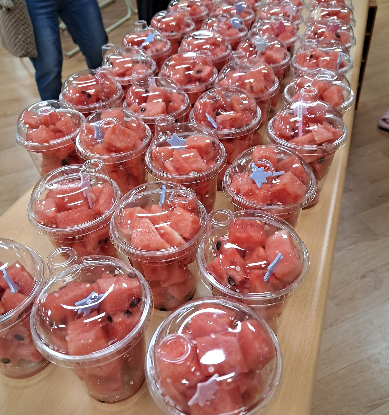 80개가 넘는 과일컵을 이렇게 준비하는 건 많은 손길과 정성이 필요했을 거야.