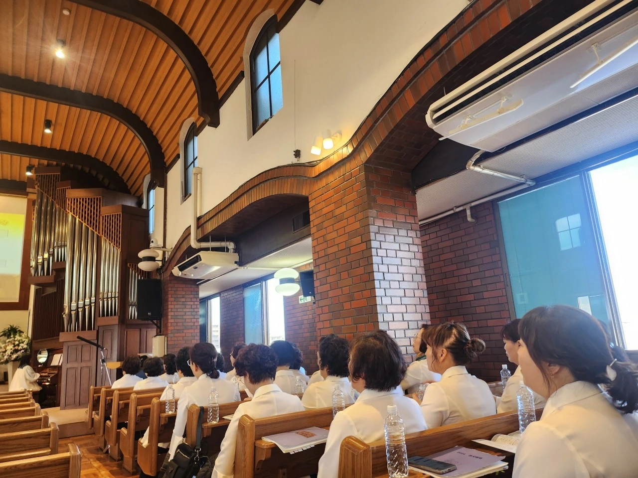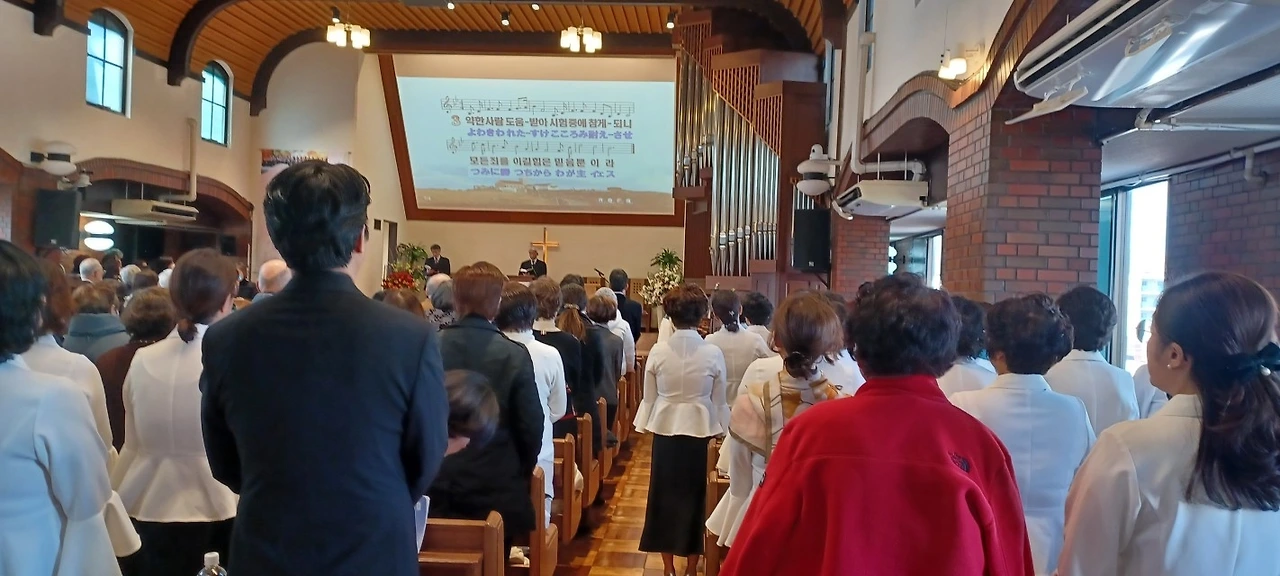 주일 예배시간은 일본어와 한국어로 동시통역이 되며 예배가 진행되었어. CTS구미권사합창단과 소년소녀합창단원등 80여 명이 함께 드리는 예배여서 교회 안은 오랜만에 꽉 채워진 듯했지만, 수가 많지 않은 성가대가 부르는 찬양은 살짝 긴장되게 했단다. 너무나 은혜로웠거든.