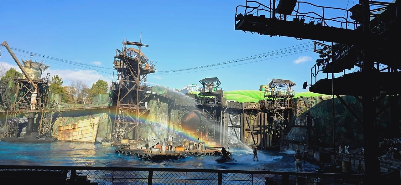 다행히 젊은 우리 권사님들의 활약으로 한 시간의 기다림 끝에 [워터 월드쇼]를 정중앙 앞자리에서 관람했지. 스케일부터 다른, 하루종일 아무것도 하지 않아도 충분할 만큼 스릴 넘치는 공연이었어.
