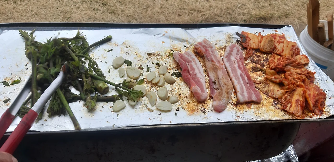 이런 내가 아이들이 오면 남편과 식사 준비를 한다. 마당에서 삼겹살을 굽고 내가 만들어 놓은 각종 장아찌(큰아이가 좋아하는 음식)는 보기 좋게 접시에 담아냈다.