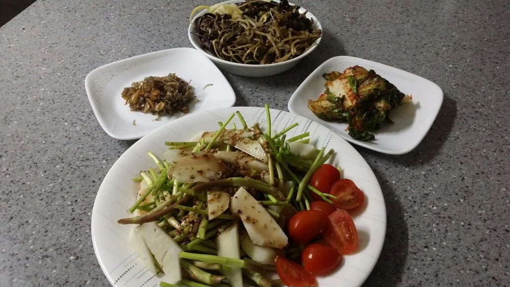 우선 남편이 좋아하는 겉절이, 무생채부터 한 가지씩 요리했다. 어느 날엔가 마당에 넘치는 고구마순 김치를 했다. 나름 홍고추 갈고 시댁에서 먹어 본 느낌을 살려보려고 애를 썼다. S.N.S에 자랑삼아 올려놓은 글에 시누이가 댓글을 달았다.