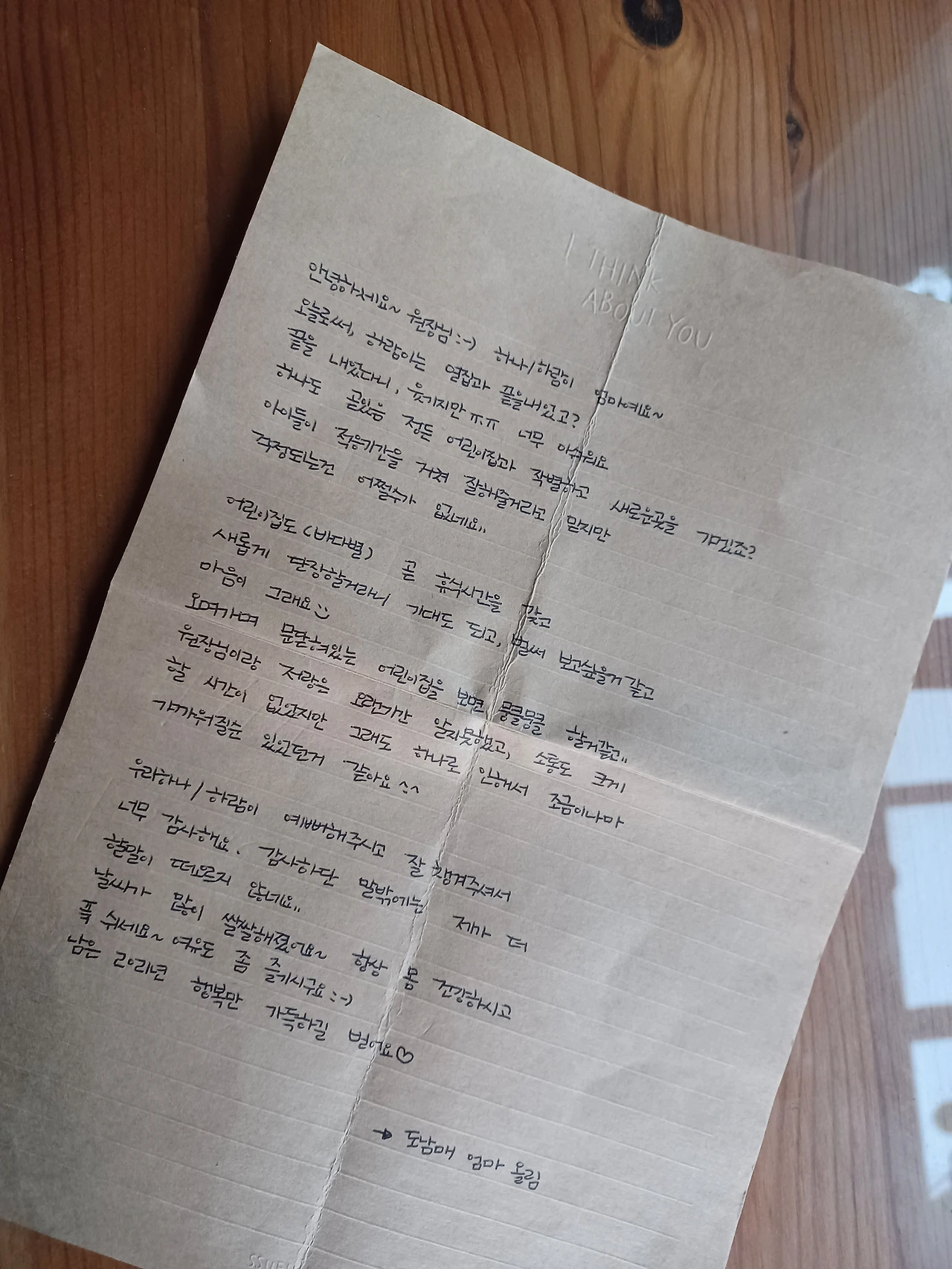 어머니의 맘, 꼭 꼭 정성 들여 적어주신 긴 손편지와 저의 취향 챙긴 꽃다발.
