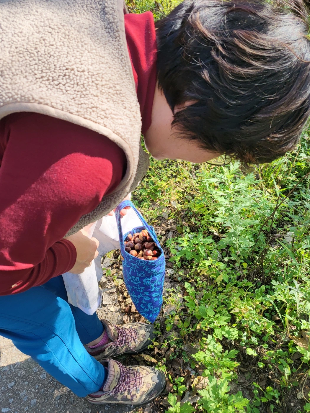 남편은 고구마를 캔 자리에 양파와 마늘을 심고 싶어 해서 밭을 정리하기로 하고, 밤은 내가 줍기로 했다. 등산복에 등산화까지 장착하고 보온조끼까지 완전무장을 했다.