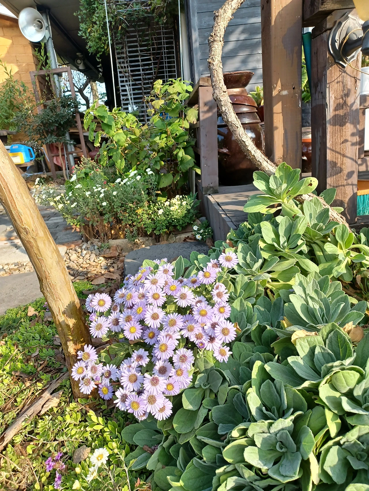 버건디색 국화꽃들이 소복소복 피어오릅니다. 작년 지고난 국화꽃들을 잘라 이불 삼아 거름 삼아 덮어두었더니 올봄 무지막지하게 싹을 틔웠습니다.