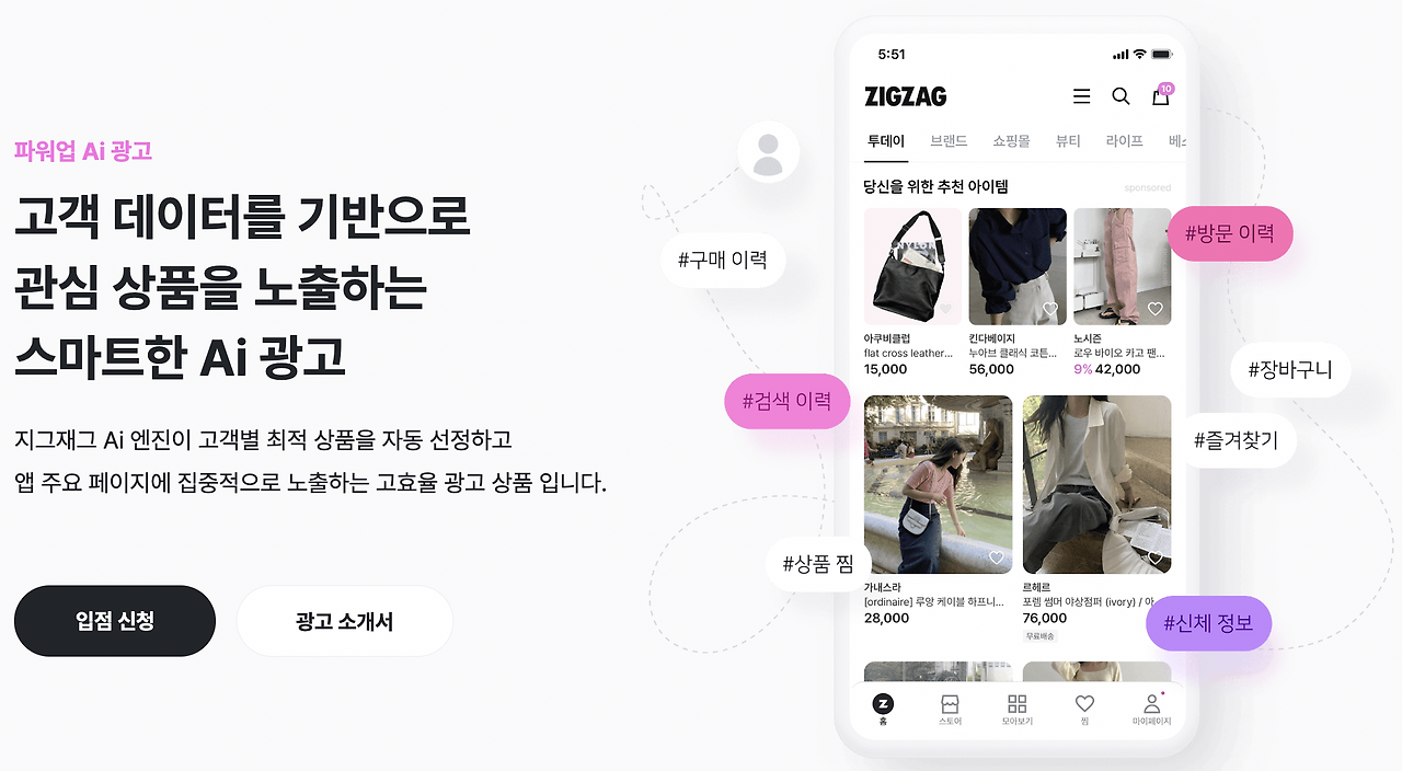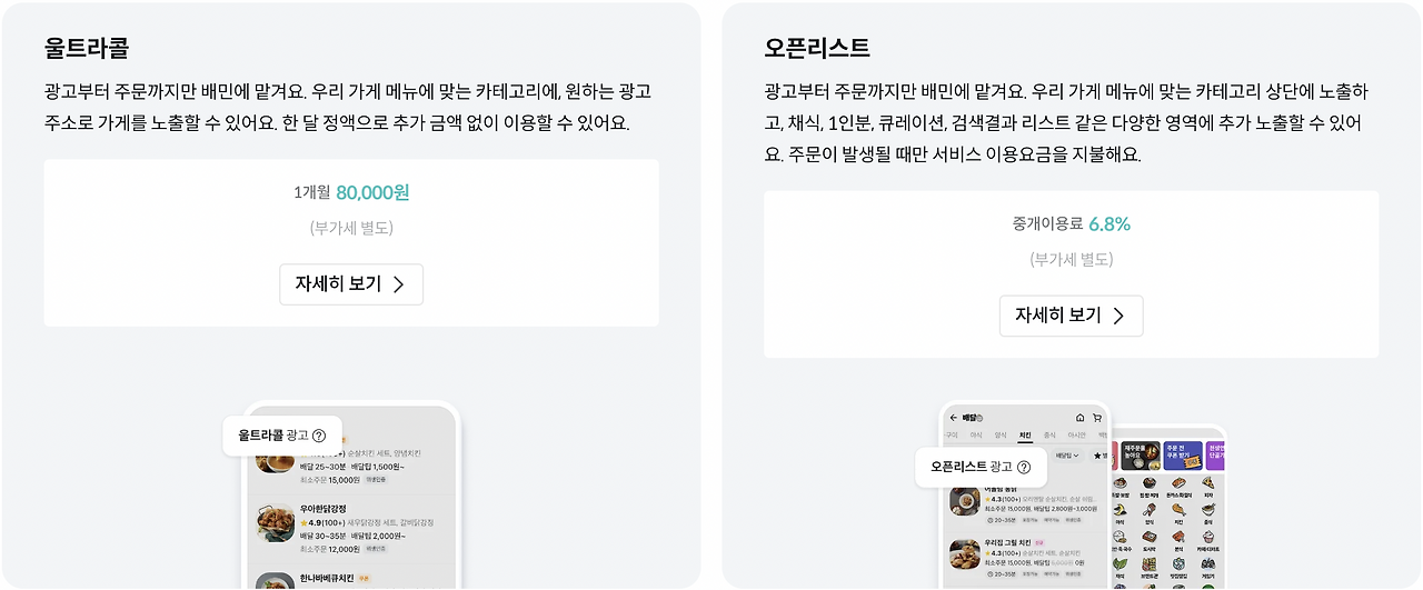 배달의민족과 지그재그는 아래 이미지처럼 자체 광고 시스템을 통해 사업자들로부터 광고 수익을 창출하고 있어요.
