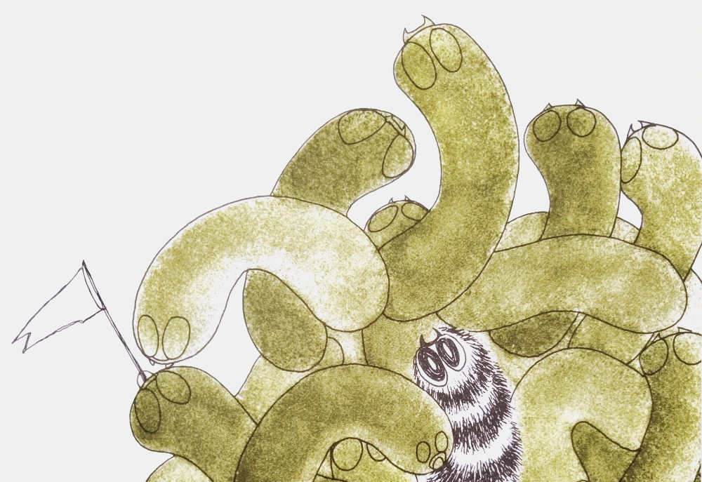 트리나 폴러스의 「꽃들에게 희망을」의 한 장면. 호랑애벌레가 애벌레 기둥 꼭대기에 다다를 때쯤, 위에서 속삭이는 소리였다.