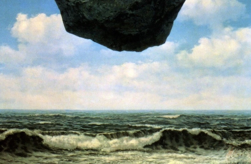 애벌레 기둥은 마그리트의 공중의 성과 묘하게 겹친다.