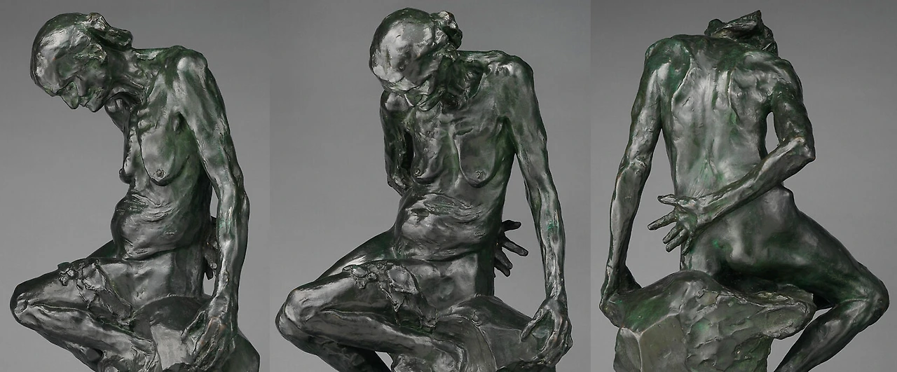 나 여지껏 살아냈고, 지금도 여기 살아가고 있노라고. 더는 젊지 않아도, 내 삶은 더없이 진실하고 아름답다고. 그녀는 죽음을 향해 걸어가는 불안한 여정 위에서도 더는 젊음을 애도하지 않는다. 그녀의 몸은 그 자체로 삶의 기록이자 증언이다. 로댕은 그녀가 '살아낸 시간', 그 무게와 흔적을 아름다움으로 새긴 것이다.