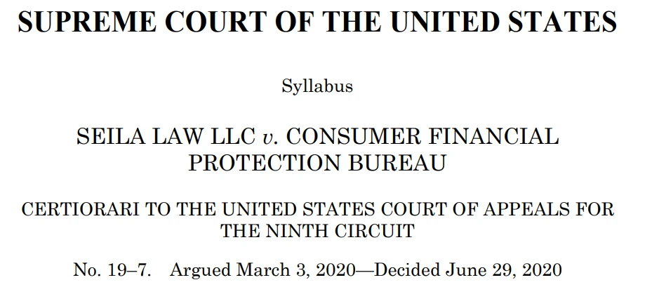Selia LLC v. CFPB 판결은 의회가 독임제 부처(독임제는 1명의 '장'이 있는 구조를 말하며, 그 반대는 '합의제'와 같은 위원회형 조직입니다)에 강력한 규제 권한을 부여하고, 대통령이 그 기관의 장을 마음대로 해임할 수 없게 한 것이 헌법적으로 가능한지 여부가 다투어진 사건입니다. 결론을 먼저 말씀드리면 위헌이라고 판결이 났습니다.