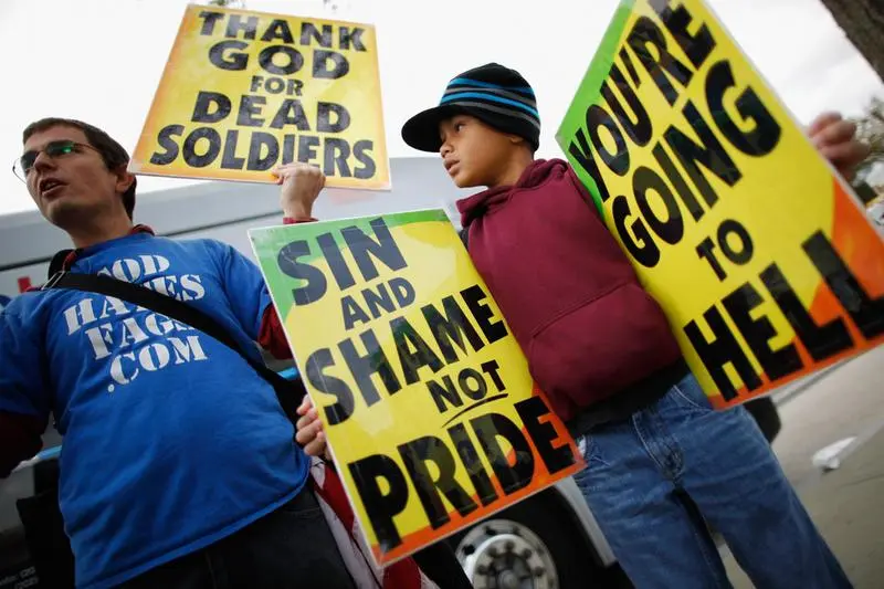 예를 들어 Snyder v. Phelps, 562 U.S. 443 (2011) 사건에서는 이라크 전 참전용사의 장례식장 근처에서 반전운동을 벌였던 종교단체가 문제되었습니다. 이 종교단체는 꽤 극단적인 운동을 벌이는 것으로 유명하였는데, 언론에서 이슈를 일으키기 위해 이라크전에 참전한 군인을 추모하는 장례식장 근처 공공주차장 부지에서 “당신 아들은 지옥에 갈 것,” “하느님, 전사하게 해주셔서 감사합니다.” 등의 문구가 쓰인 피켓을 들고 시위를 벌입니다. 반전운동의 취지는 이해하더라도 나라를 위해 고생하다가 죽은 아들을 둔 부모 입장에서는 천인공노할 일이 아닐 수 없겠지요.