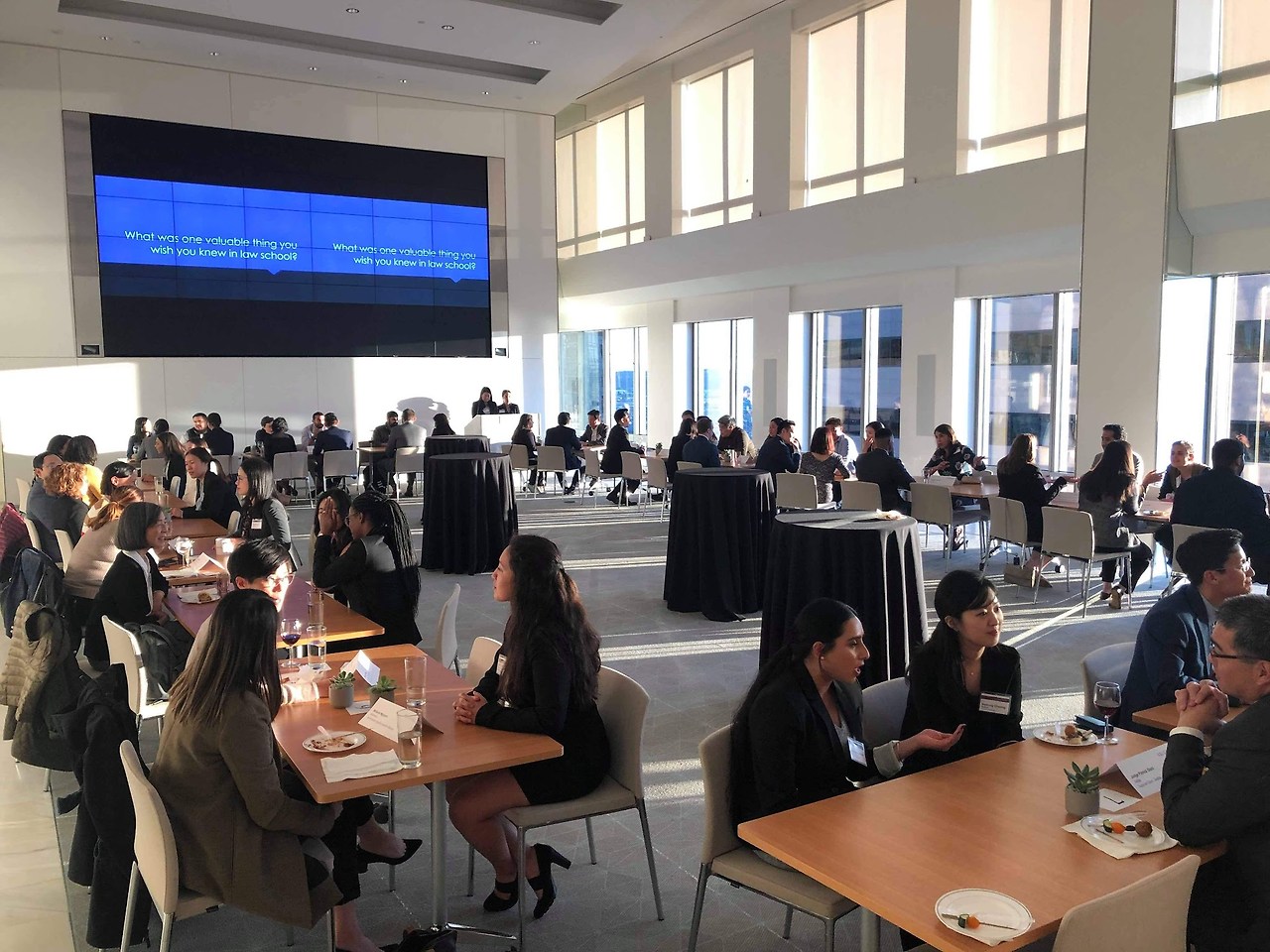 그리고 기업인들은 학생들의 자치활동도 후원한다. 예를 들면, 내가 속한 아시안학생연합회(Asia-Pacific American Law Student Association)에서는 마이크로소프트와 K&L Gates의 후원을 받아 연례 '스피드 네트워킹 파티'라는 것을 한다. 나는 지난 2019년에 K&L Gates의 무척 세련된 사무실에서 훌륭한 다과와 함께 열리는 이 행사에 참석을 했었다. 법원, 시민단체, 연방 정부, 검찰, 로펌, 국선변호인 등 다양한 직종의 사람들이 와 있었다. 현직 변호사 2명: 학생 2명으로 10분간 앉아서 대화를 하다가 벨이 울리면 옆 테이블로 옮기는 방식이었다. 내 짝꿍이 된 인도 출신 친구는 구직자로서의 훌륭한 질문을 엄청 빠른 목소리로 했다.