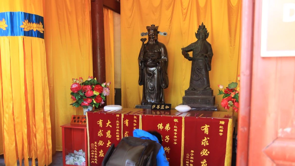 학교 버스를 타고 가이드의 설명을 들으며 도착한 곳은 북경의 북동쪽 외곽에 있는 홍라사(紅螺寺)이다. 중국의 시간 개념으로 눈 깜빡할 사이(가이드의 설명이 중국의 금방은 40분 정도, 눈 깜빡할 사이는 1시간 30분이란다)에 도착한 이곳은 16국 시대(338년)에 지어진 사찰로 중국 북방지역에서는 가장 크고 유명한 사찰이다. 그러나 이 사찰도 문화혁명 때 대부분의 건물이 다 소실되고 그 이후 재건된 것이라 건물보다는 나무와 같은 자연물로 그 유구한 역사를 확인할 수 있다. 원래 이름은 대명사(大明寺)이지만 홍라선녀의 전설에 의해 홍라사라는 이름이 더 많이 알려졌다.