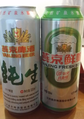 북경의 옛 이름이 연경이다. 그래서 북경에 오면 연경 맥주를 많이 볼 수 있다. 가장 흔한 연경 맥주. 한 캔에 2~3원으로 살 수 있어 물보다 싸다. 그래서 마트에 가장 많이 깔려 있다. 그다지 특별한 맛이 있어서 마신다기보다는 냉장고에 시원하게 넣어서 마시는 음료수 같은 느낌. 하긴 중국사람들은 맥주든 음료수든 차가운 것을 안 마셔서 꼭 달라고 할 때는 '삥더(차가운 것)'룰 외쳐야지만 차가운 걸 준다. 연경 맥주도 종류가 여러 가지다. 두 번째 사진은 이름도 너무나 어려운 위엔지안바이피(원장백비) 원래 즙이 하얀 맥주? 아 어렵다 어려워..... 그런데 맛은 수제 맥주에 가장 가깝다. 밀맥주(바이스비어) 중에 효모를 여과하지 않은 헤퍼바이젠에 해당하는 맛. 내가 그리 좋아하지는 않는 수제 맥주 맛이기는 하지만 오래간만에 먹어보는 맛에 한국에 있을 때 한 동안 자주 갔던 상수동 수제 맥주집 케그비가 몹시도 그리워지는 것이었다. 사장님은 여전히 나를 기억하실까?^^