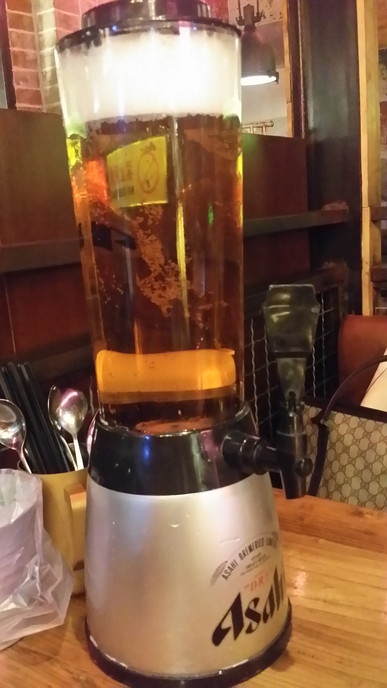 여기 맥주 집 가면 행복한 이유 하나. 아사히 생맥주가 한국에 비해 엄청나게 싸다는 것. 아사히 생맥주 3000cc의 저 위용을 어디서나 쉽게 즐길 수 있다는 것은 한국에서는 상상도 못했던 일이다.^^ 또 하나 특별한 맥주가 태산 맥주. 가장 수제 맥주 맛에 가까운 기성 제품이랄까? 이 맥주는 유효기간이 일주일밖에 안 된단다. 신랑 지인 중 한 분이 이 맥주를 맛보고 너무 맛있어서 인터넷으로 주문을 했는데(중국에서는 술도 인터넷 배달이 된단다. 아싸!) 유효기간이 그렇게 짧은 줄 모르고 한 박스를 주문했단다. 배달 온 후 일주일이라는 유효기간을 확인하고는 며칠 뒤 한국을 들어갈 일이 있어서 눈물을 머금고 주위 사람들에게 다 나눠 주고 한국에 들어가야 했다는 슬픈 이야기.